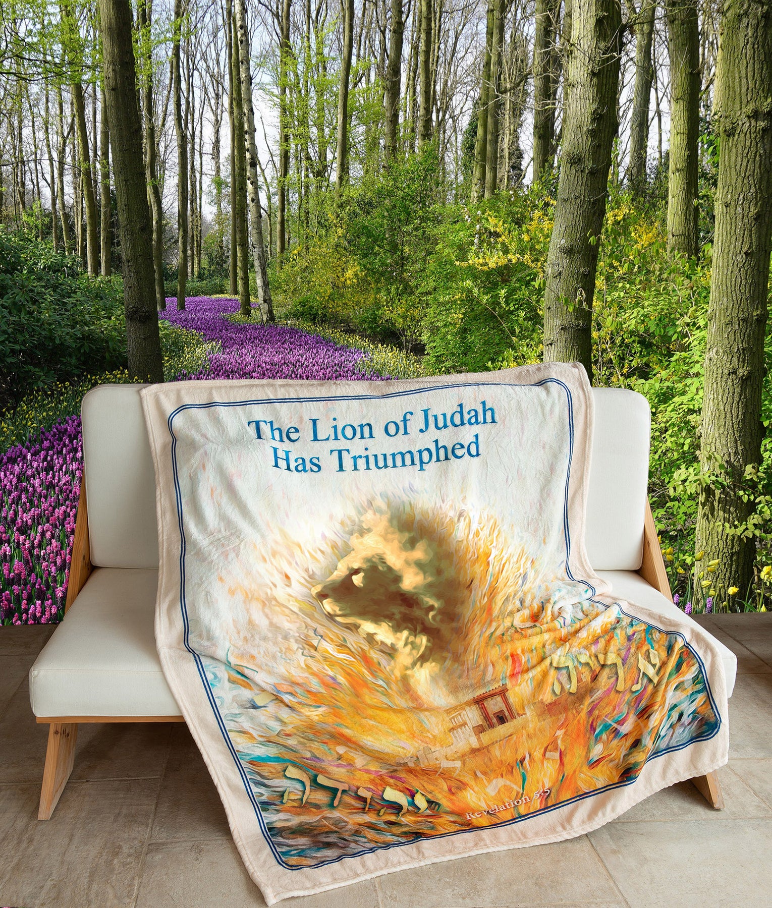 Presenting out newest addition to our blanket collection is the Lion of Judah Blanket. It boasts of the Lion of Judah roaring through the flames from His Holy Temple along with sprinkles of Hebrew words.  This beautiful, soft blanket measures 60" x 50". Makes a beautiful gift!